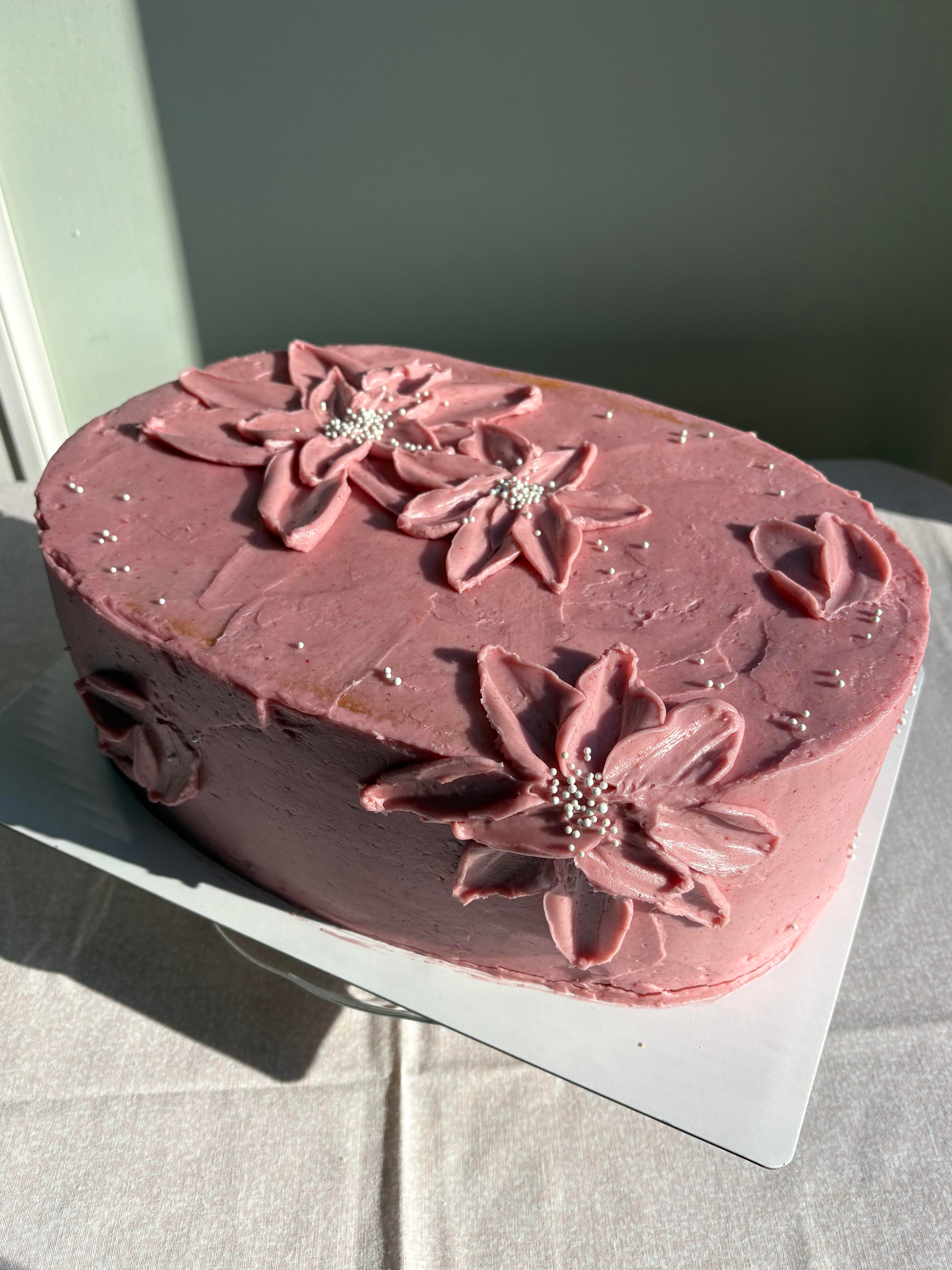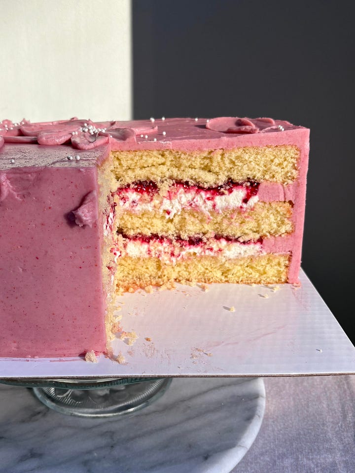 A pink cake? For February? Groundbreaking. But, so refreshingly delicious!